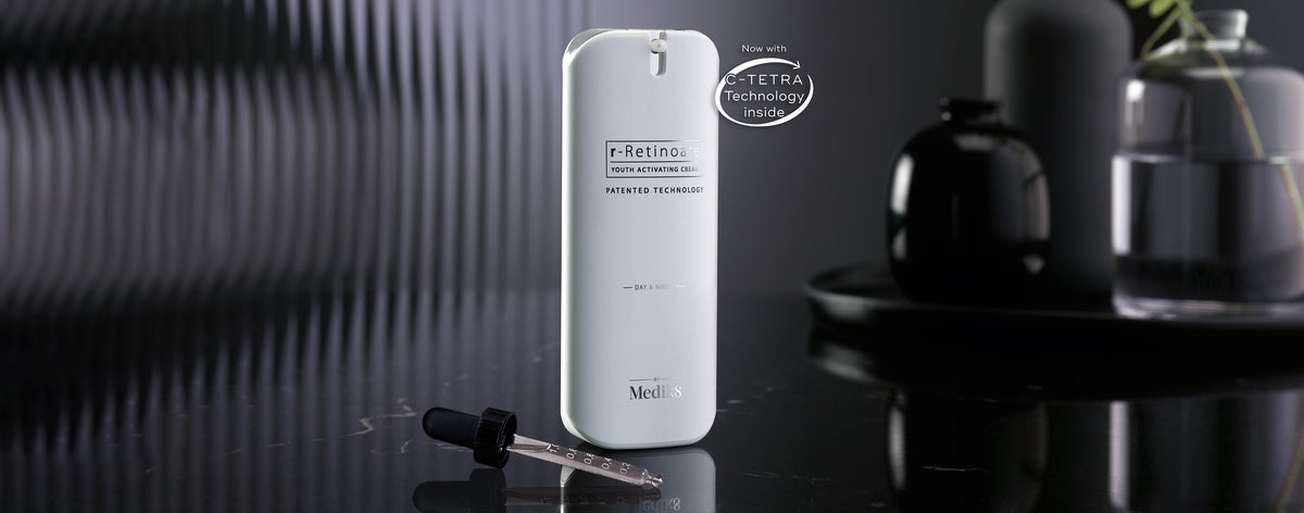 The r-Retinoate range embodies a true breakthrough in vitamin A skincare technology. Encapsulated retinyl retinoate, the star of the range, is patented worldwide and exclusive to Medik8. It is truly our most prized possession. For those of you that don’t know, retinyl retinoate spectacularly fuses retinol (the classic form of vitamin A) and retinoic acid (the active form of vitamin A) together in a one of a kind super molecule. And it just got better.